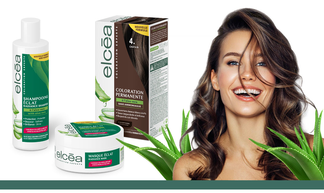 За да поддържате брилянтен цвят и да подхраните косата си, гамата включва шампоан и маска Elcéa, обогатени с алое вера и черна роза.
